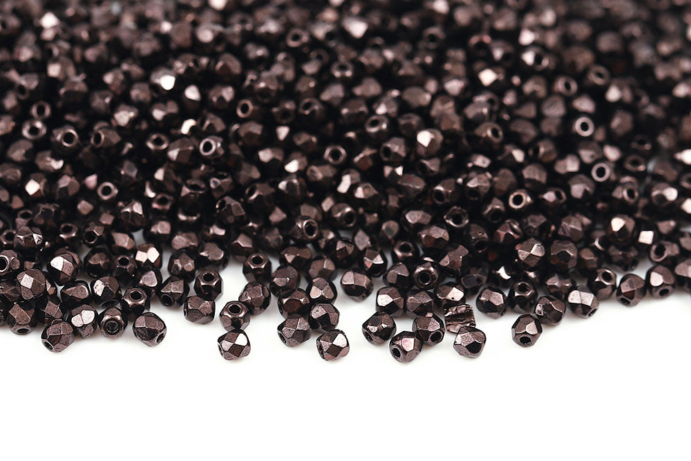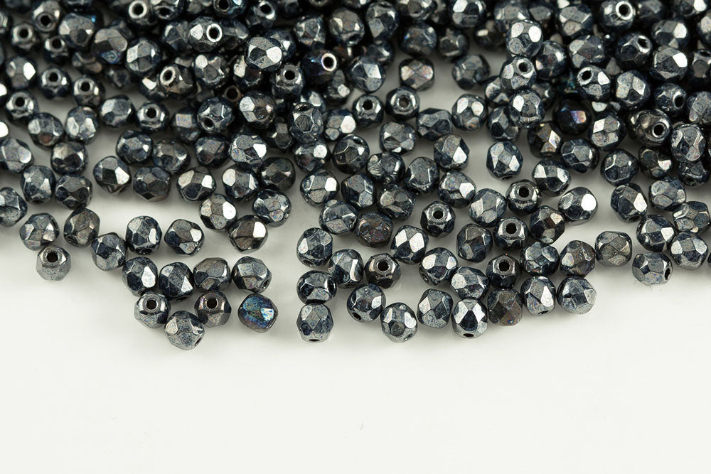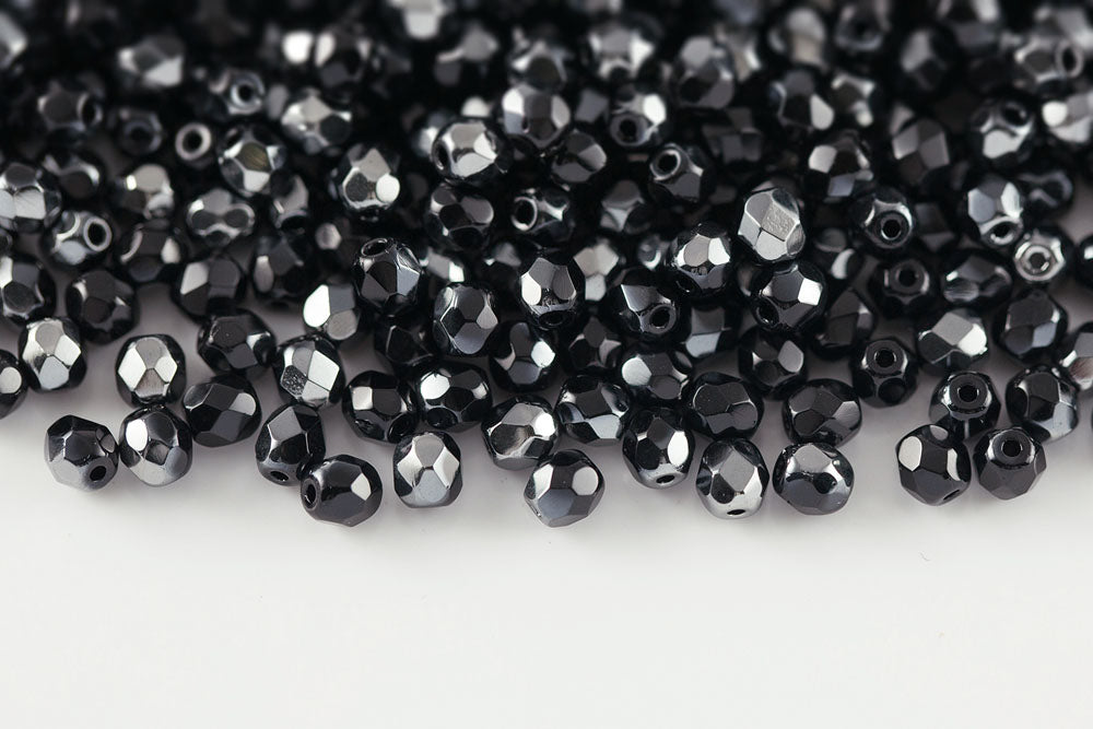 Czech Fire Polished 3mm Jet Hematit Round Beads