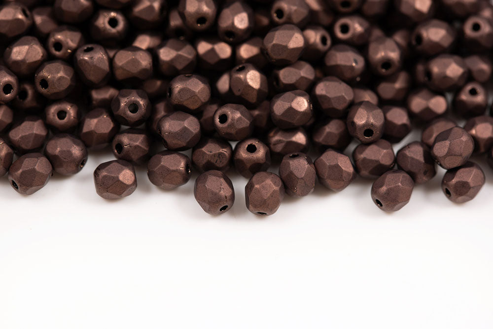 Czech Fire Polished 4mm Jet Travertin Round Beads