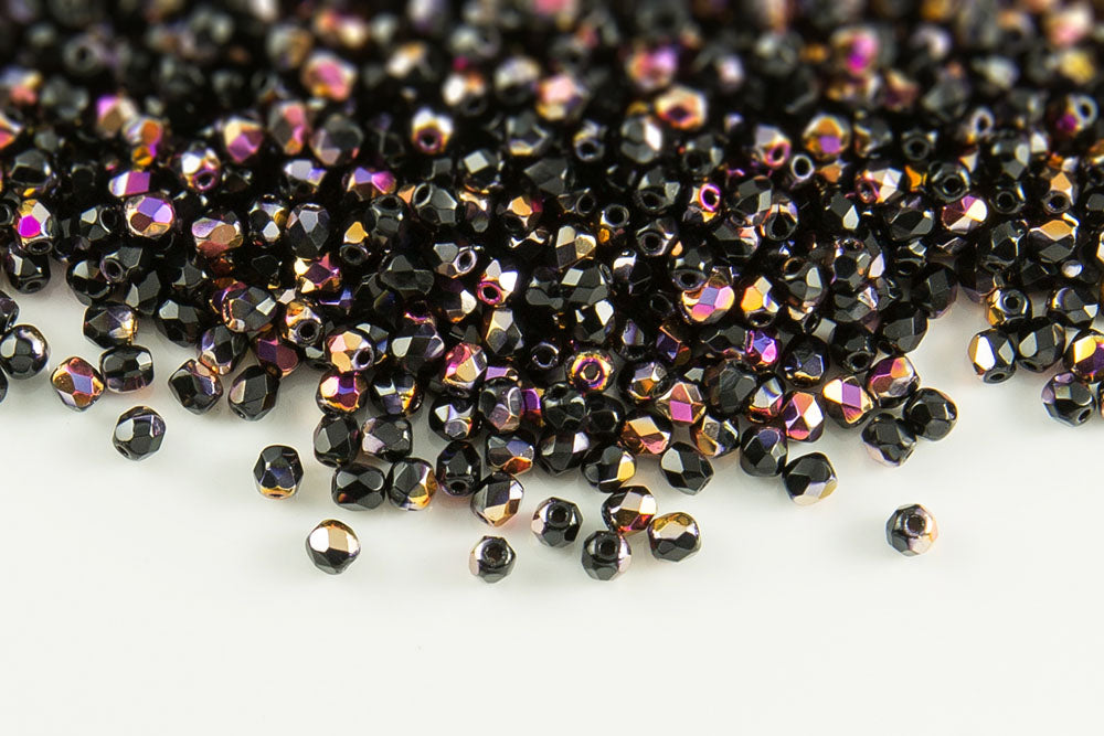Czech Fire Polished 2.0mm Vega On Jet Round Beads