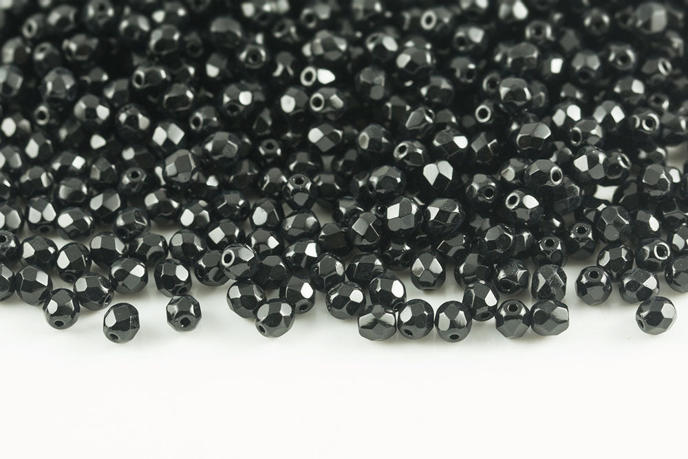 Czech Fire Polished 4mm Jet Luster Round Beads