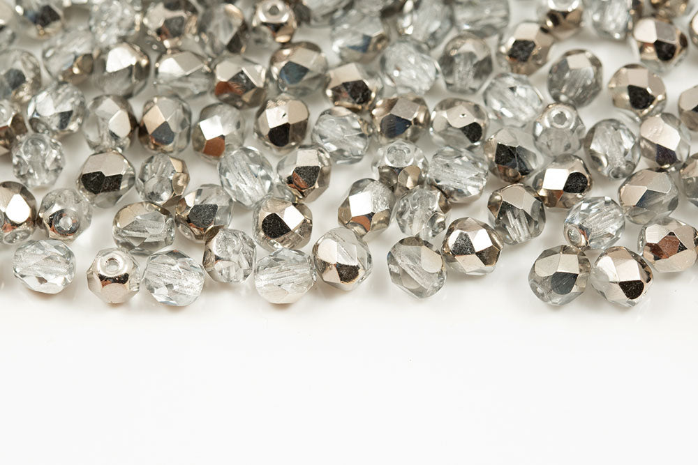 Czech Fire Polished 6mm Crystal Argentic Round Beads
