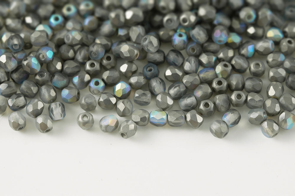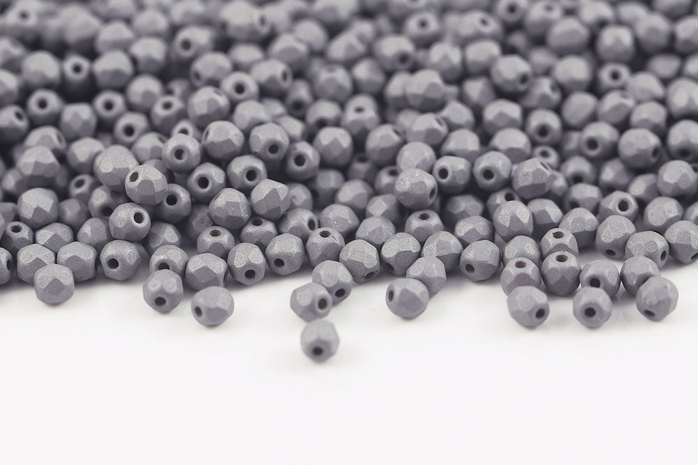 Czech Fire Polished 3mm Silk Gray Round Beads