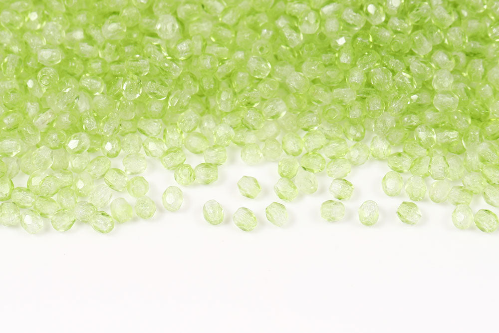 Czech Fire Polished 4mm Lt.Moss Green Round Beads