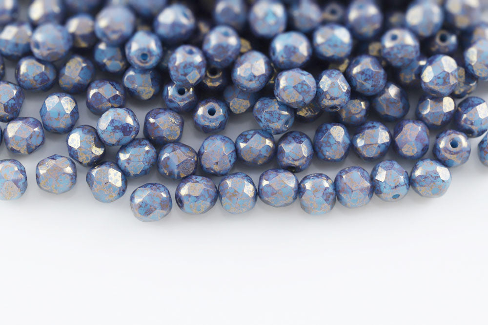 Czech Fire Polished 2.0mm Crystal Travertin Round Beads