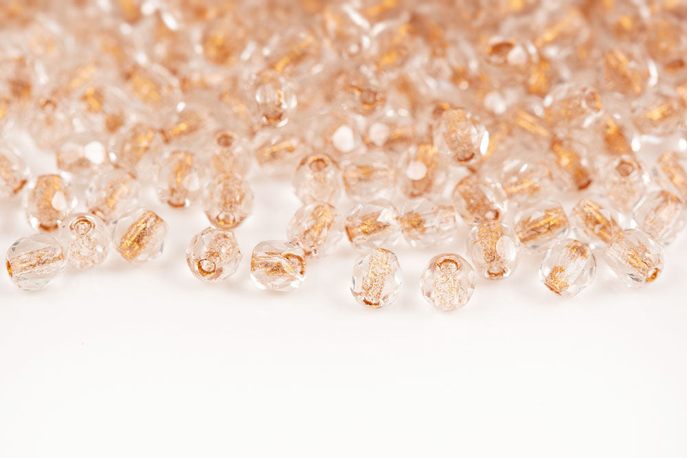 Czech Fire Polished 3mm Crystal Gold Lined Round Beads