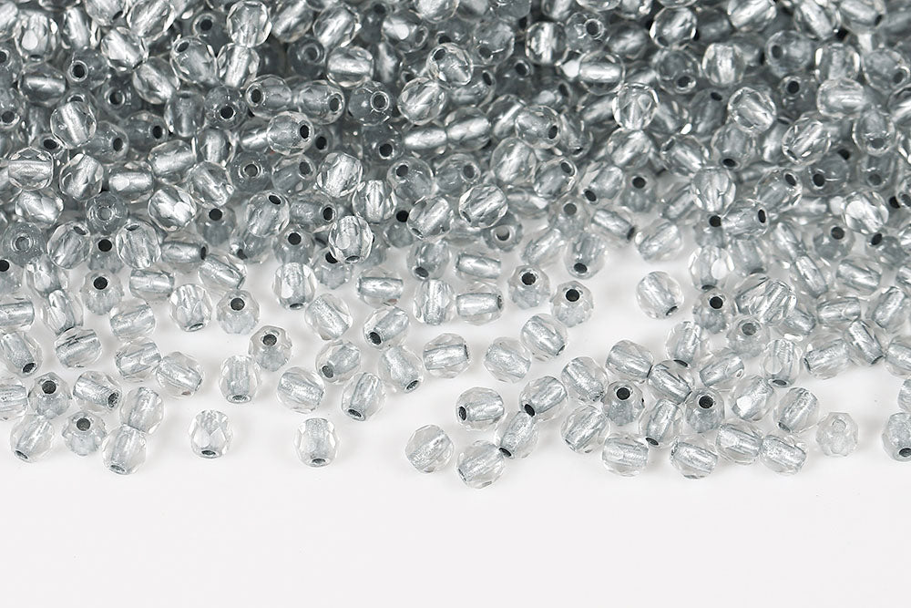 Czech Fire Polished 3mm Silver Splash Crystal Round Beads