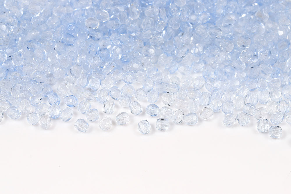Czech Fire Polished 3mm Cryatsl&Blue Round Beads