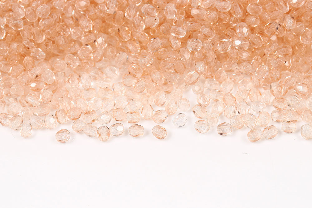 Czech Fire Polished 3mm Opal Lt.Peach Round Beads