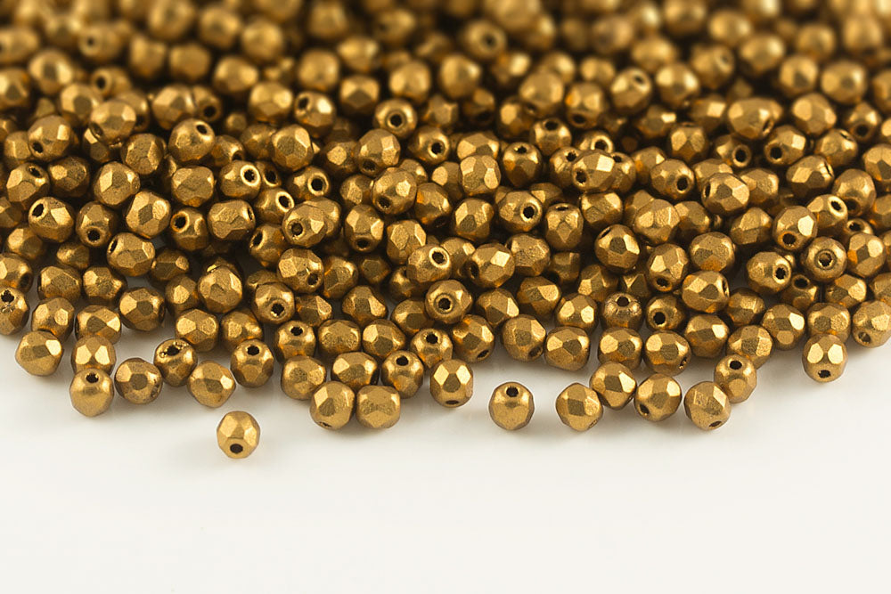 Czech Fire Polished 3mm Gold Pearl Round Beads