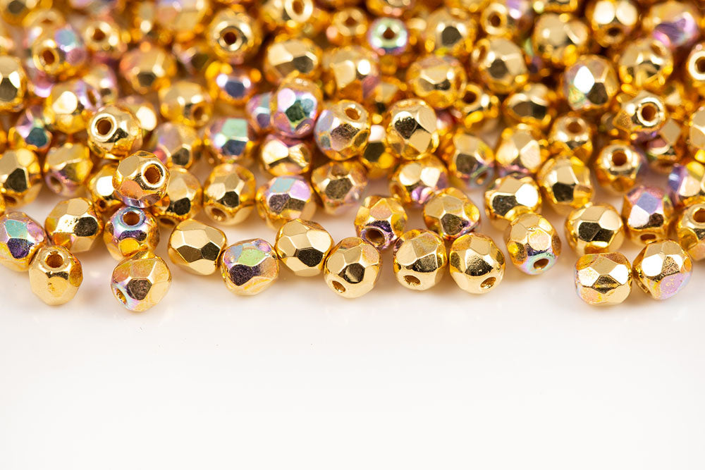 Czech Fire Polished 3mm Gold Plated AB Round Beads