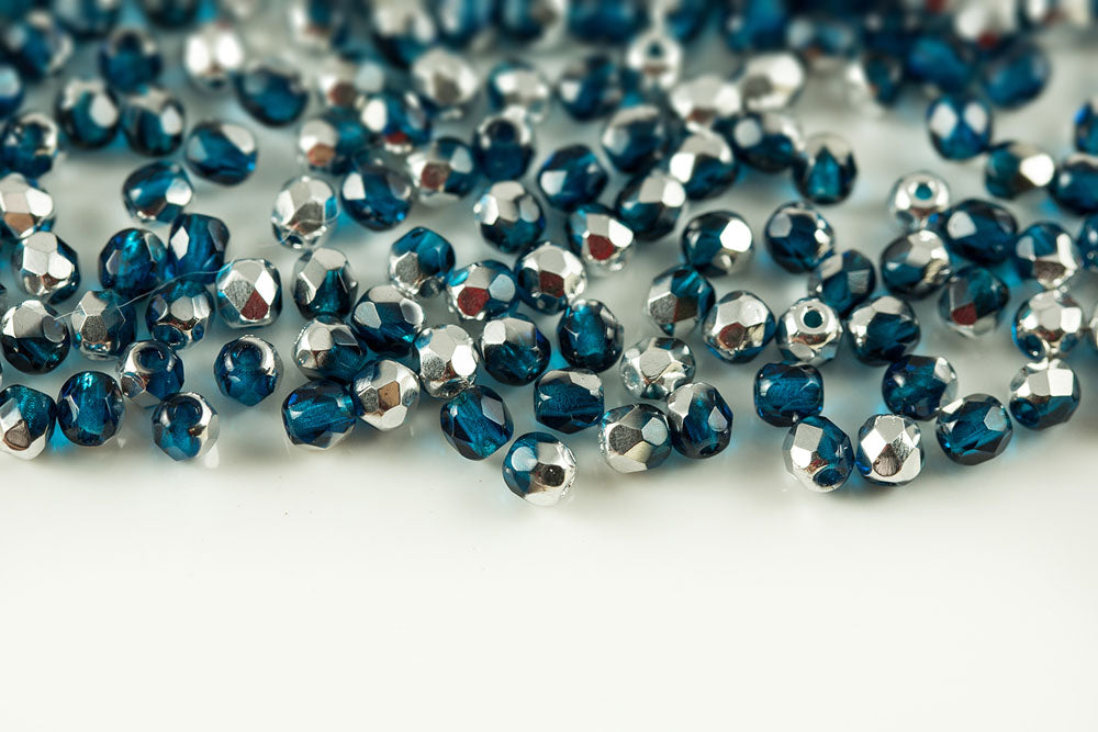 Czech Fire Polished 3mm Dark Peacock Blue Round Beads