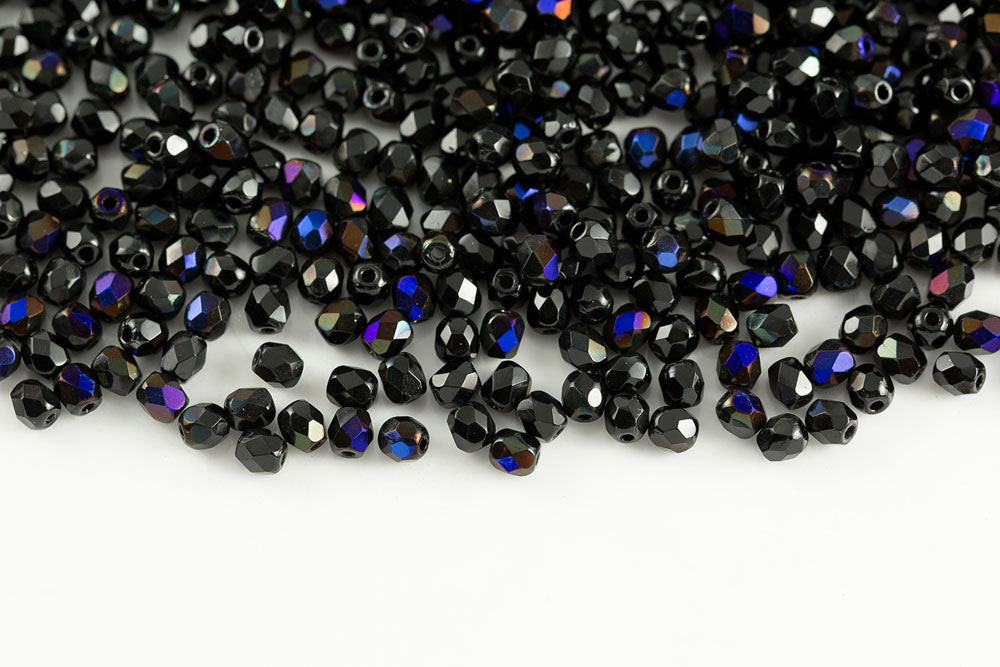 Czech Fire Polished 3mm Jet Blue Iris Round Beads