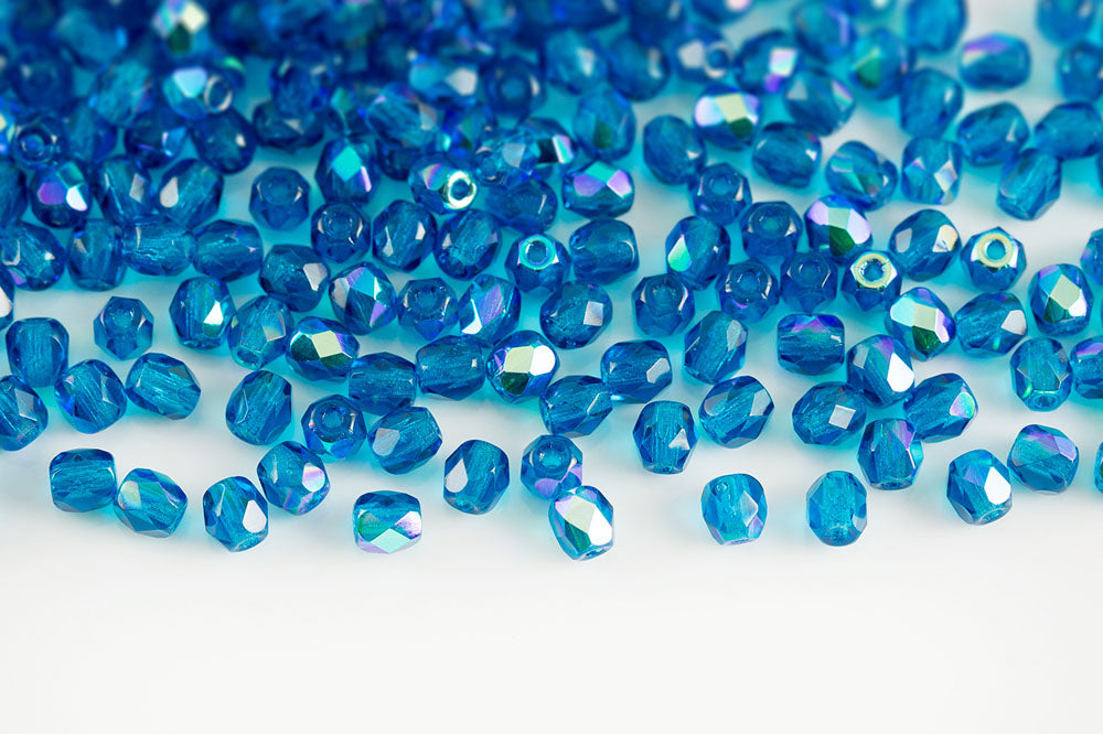 Czech Fire Polished 4mm Lt.Sapphire AB Round Beads