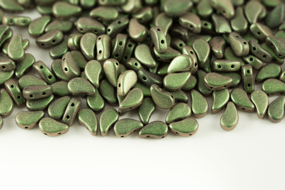 Flatduo 8×5mm Polychrome Chameleon Green 2-Hole Czech Beads