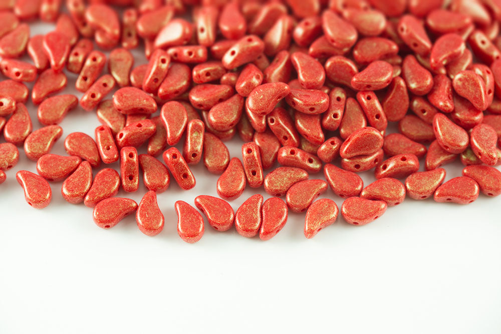Flatduo 8×5mm Stardust Opaque Coral Red 2-Hole Czech Beads