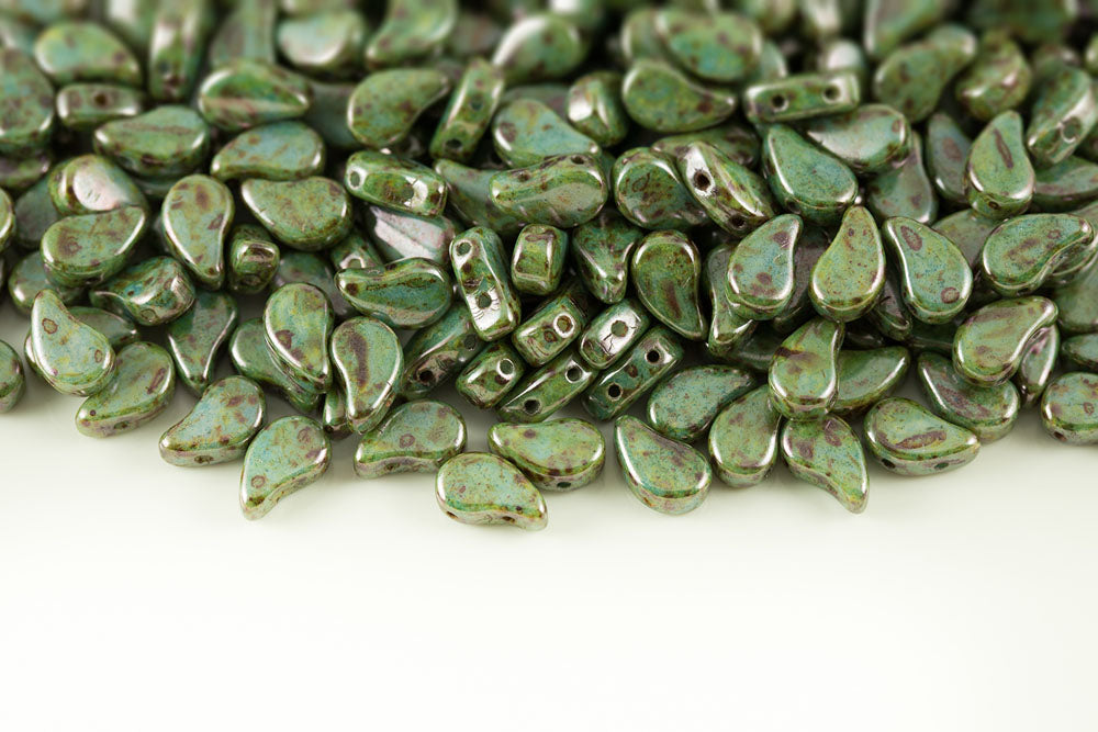 Flatduo 8×5mm Polychrome Chameleon Green 2-Hole Czech Beads