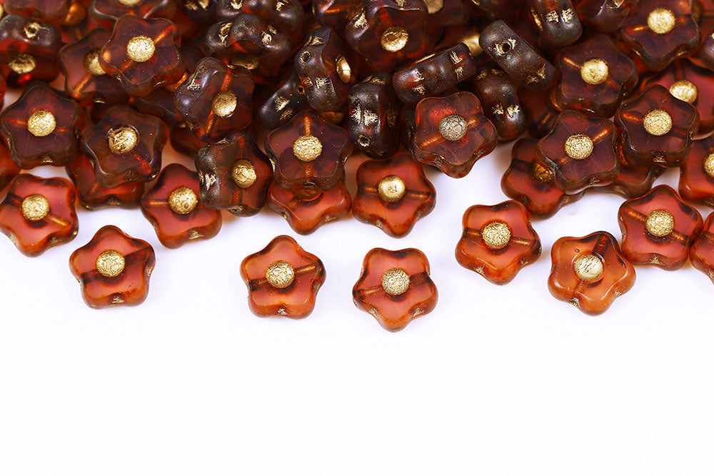 Forget Me Not 11mm Crystal Travertine With Gold 1-Hole Czech Beads