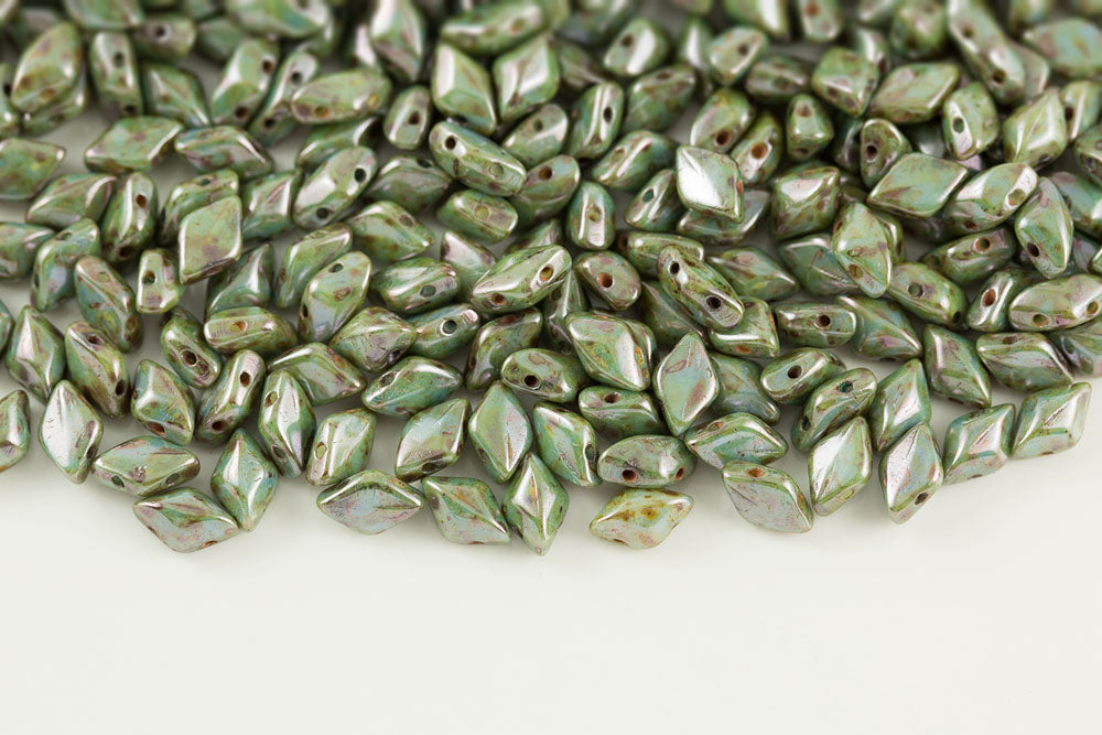 Gemduo 8×5mm Polychrome Chameleon Emerald 2-Hole Czech Beads