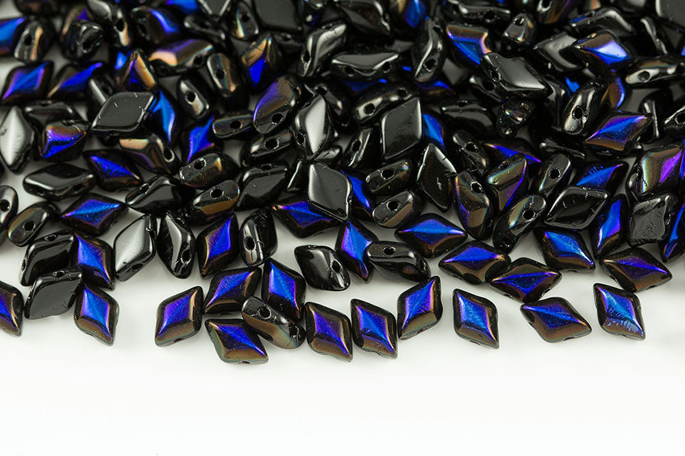 Gemduo 8×5mm Jet Azuro 2-Hole Czech Beads