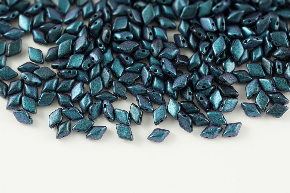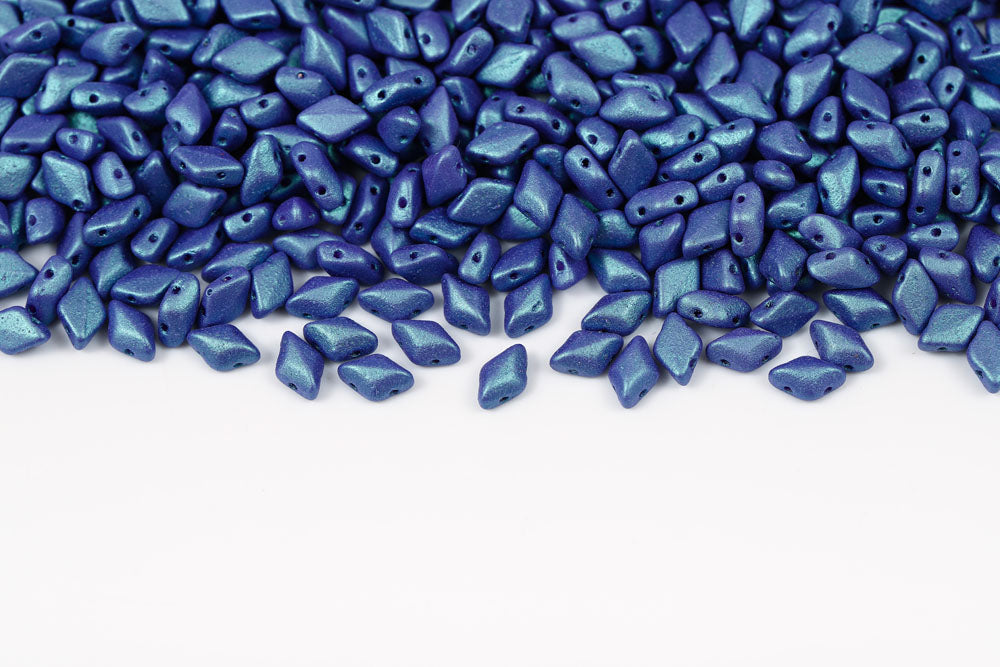 Gemduo 8×5mm Metallic Suede Dark Blue 2-Hole Czech Beads