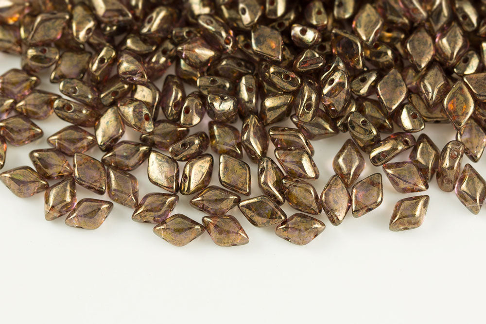 Gemduo 8×5mm Gold Splash Amethyst 2-Hole Czech Beads