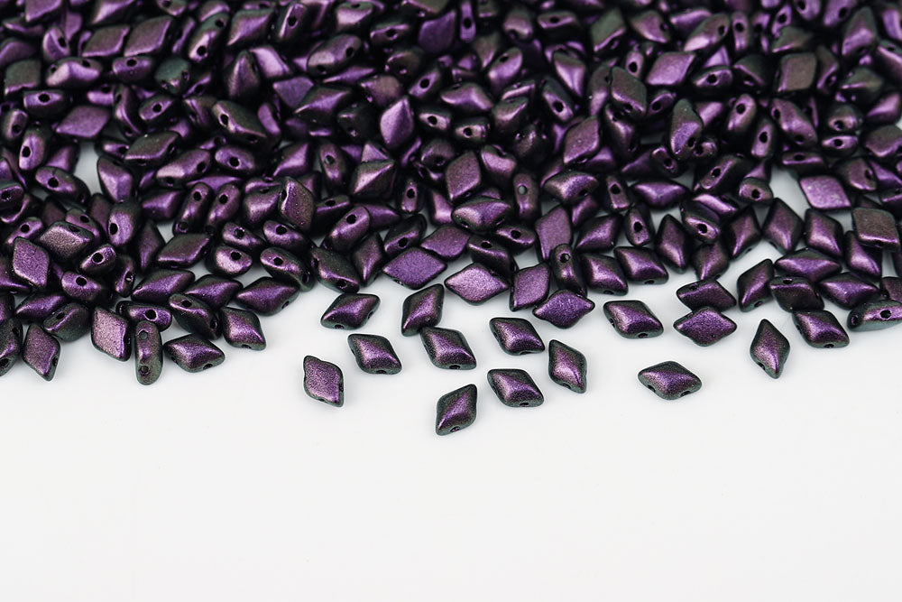 Gemduo 8×5mm Metallic Suede Dark Purple 2-Hole Czech Beads