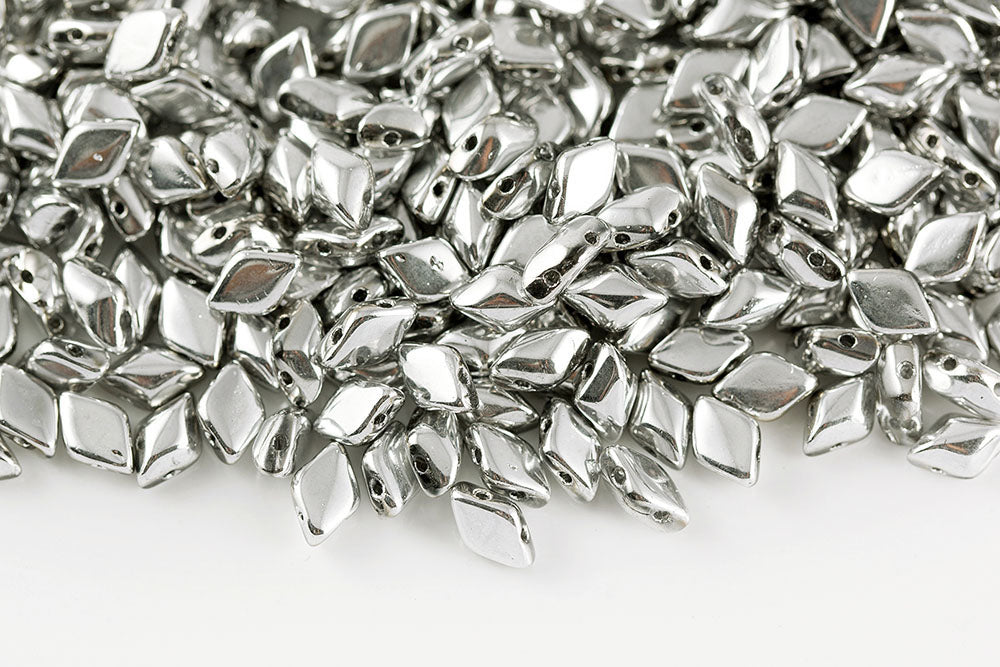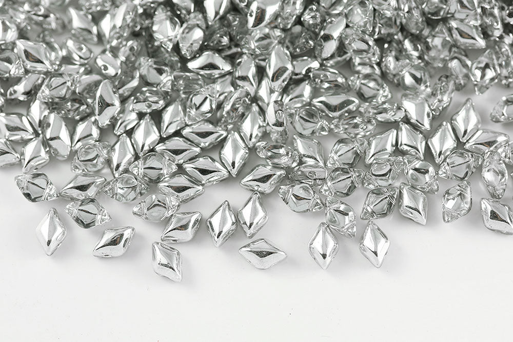 Gemduo 8×5mm Silver Plated 2-Hole Czech Beads