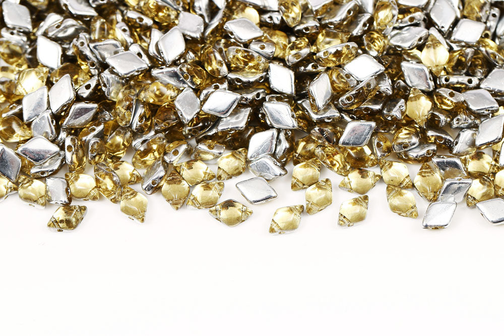 Gemduo 8×5mm Halo Gold Green 2-Hole Czech Beads