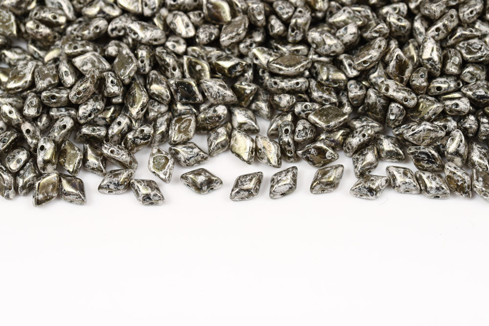 Gemduo 8×5mm Jet Travertin Dark 2-Hole Czech Beads