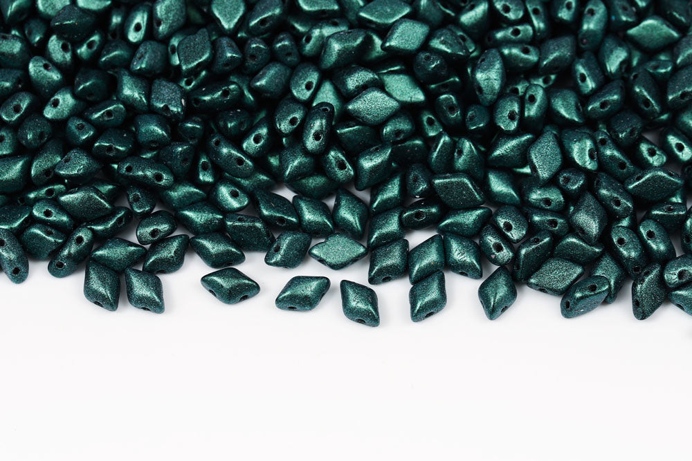 Gemduo 8×5mm Metallic Suede Medium Blue/green 2-Hole Czech Beads