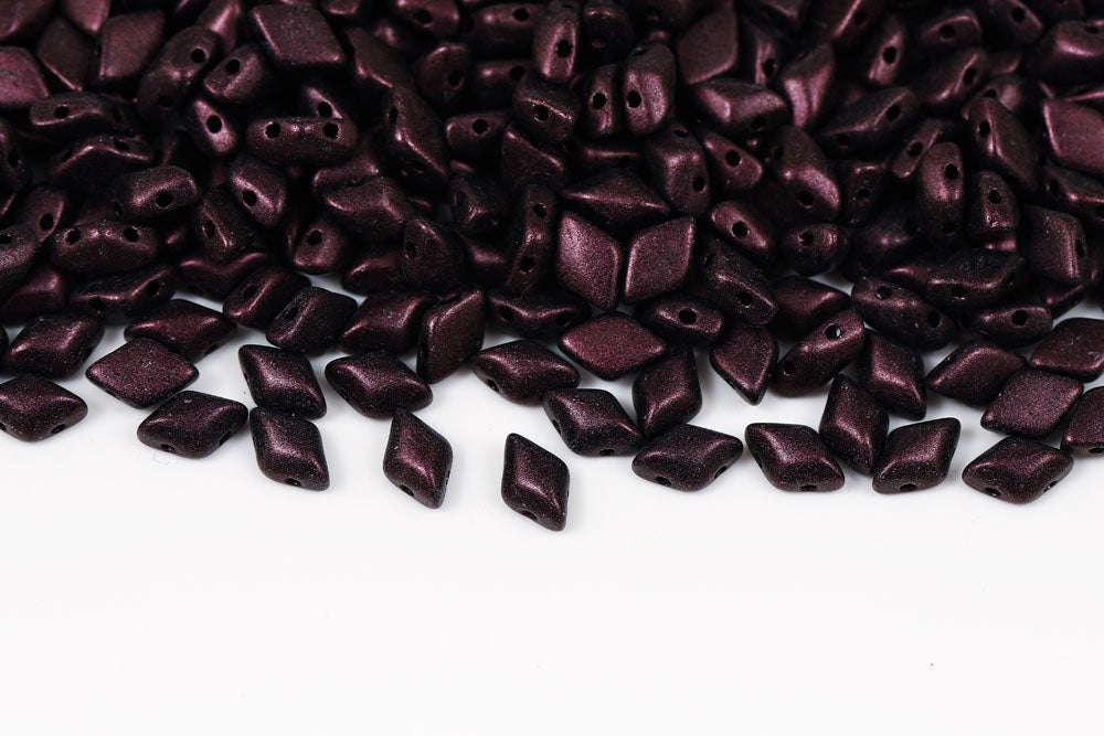 Gemduo 8×5mm Metallic Suede Dark Plum 2-Hole Czech Beads