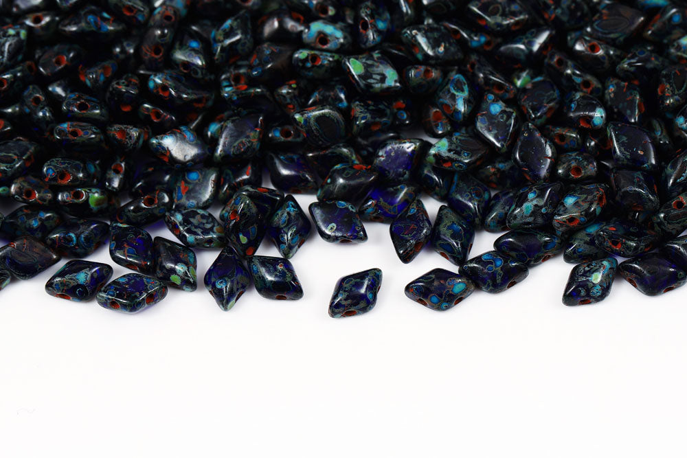Gemduo 8×5mm Gold Splash Navy Blue 2-Hole Czech Beads