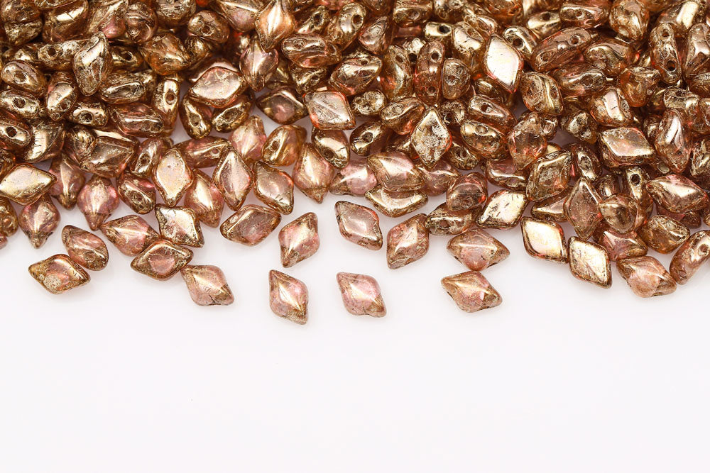 Gemduo 8×5mm Halo French Rose 2-Hole Czech Beads