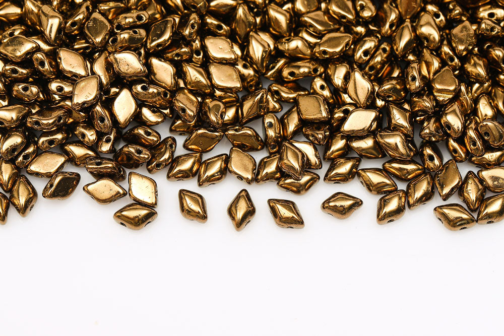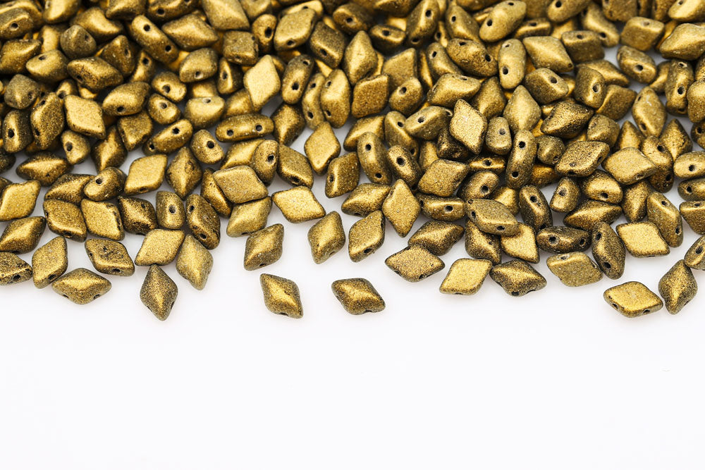 Gemduo 8×5mm Metallic Suede Gold 2-Hole Czech Beads