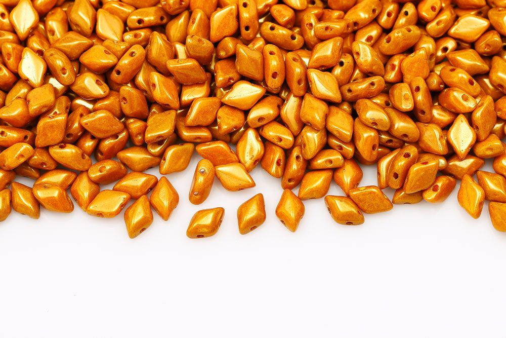 Gemduo 8×5mm Pearl Shine Amber 2-Hole Czech Beads