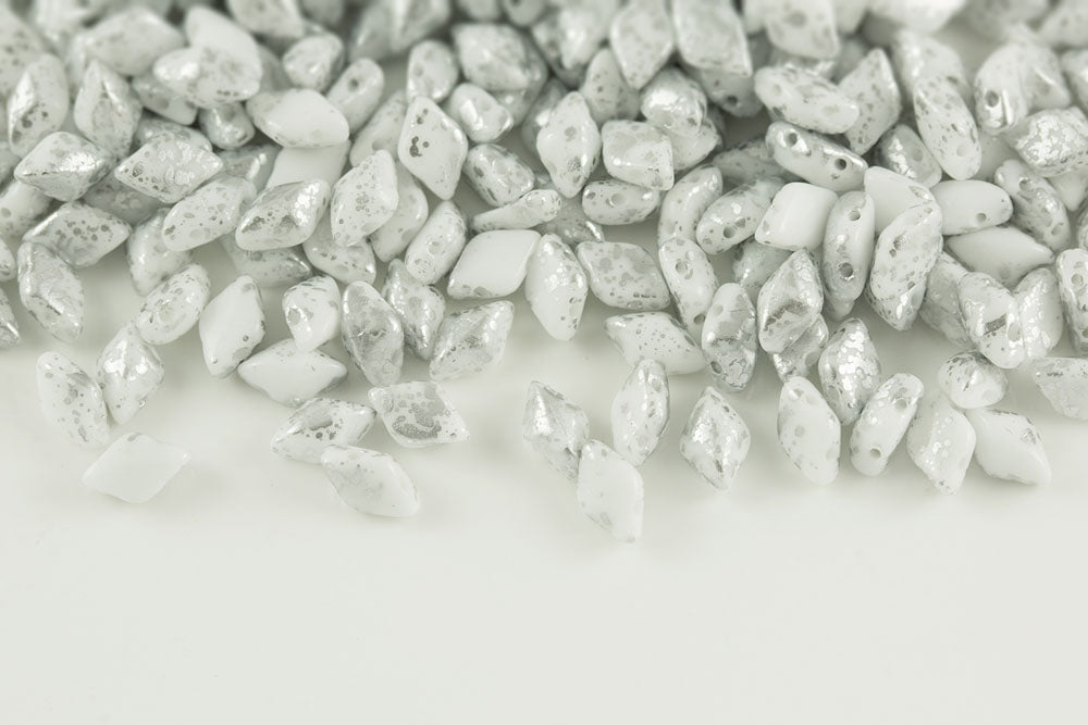 Gemduo 8×5mm Chalk Silver Splash 2-Hole Czech Beads