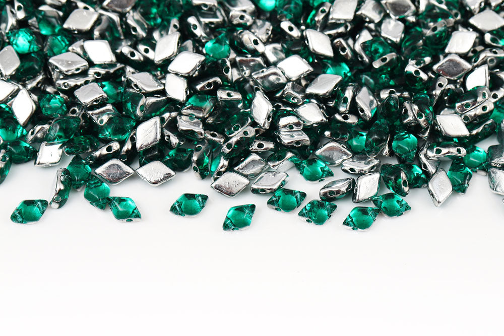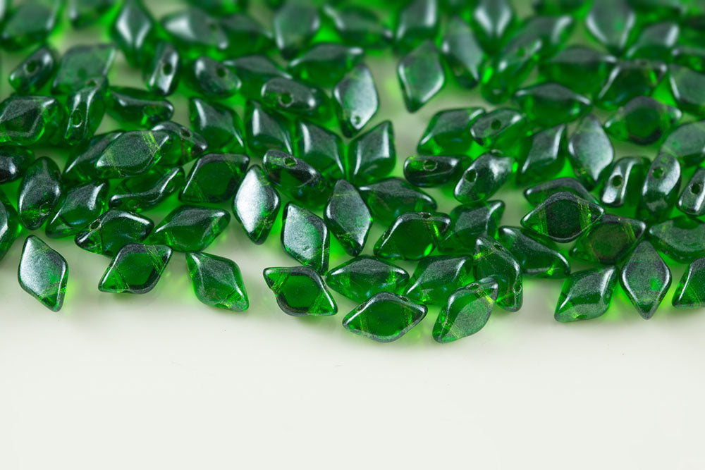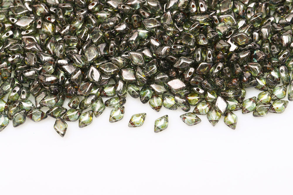 Gemduo 8×5mm Jet Green Iris 2-Hole Czech Beads
