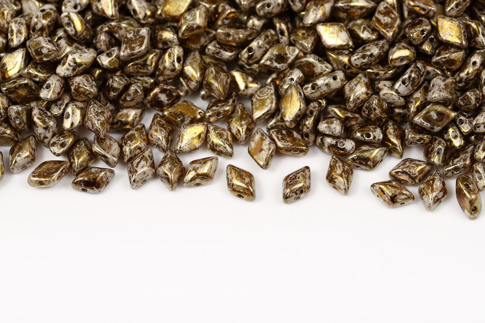 Gemduo 8×5mm Opaque Gray Gold Splash 2-Hole Czech Beads