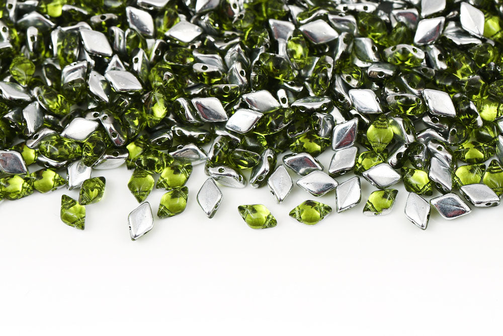 Gemduo 8×5mm Backlit Olivine 2-Hole Czech Beads