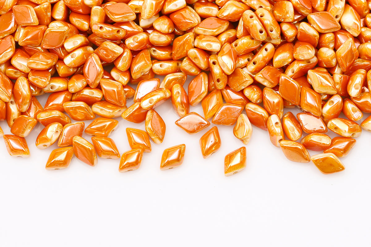 Gemduo 8×5mm Crystal Gleam Orange Glaze 2-Hole Czech Beads