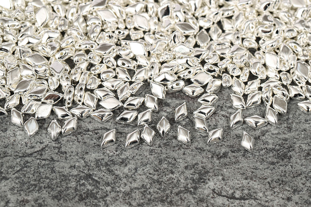 Gemduo 8×5mm Silver Plated 2-Hole Czech Beads