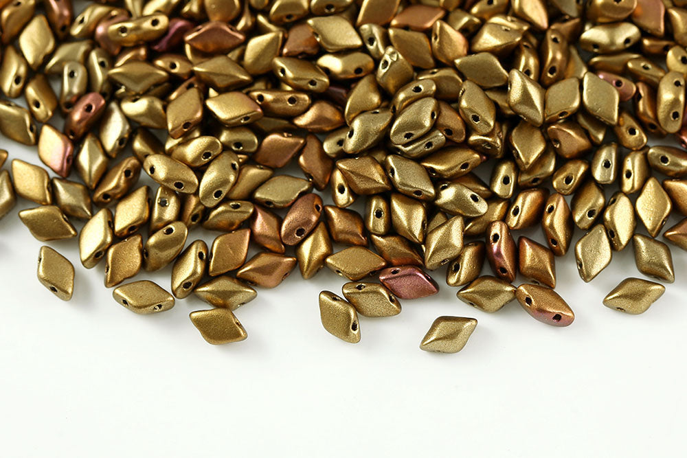 Gemduo 8×5mm Metalust Yellow Gold 2-Hole Czech Beads