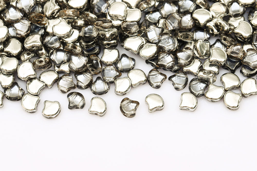 Ginko 7.5×7.5mm Opal Gray White Luster 2-Hole Czech Beads