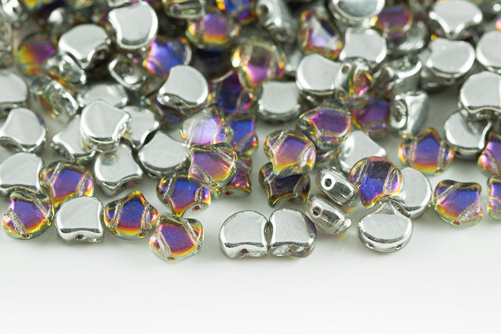 Ginko 7.5×7.5mm Crystal Violet Rainbow 2-Hole Czech Beads