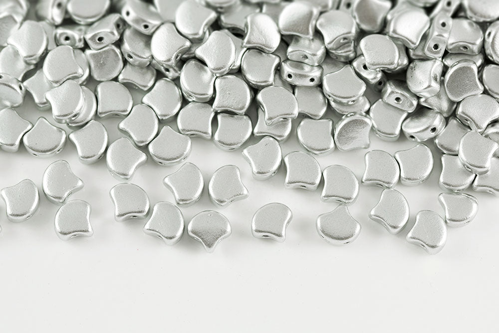 Ginko 7.5×7.5mm Metal Matt Silver 2-Hole Czech Beads