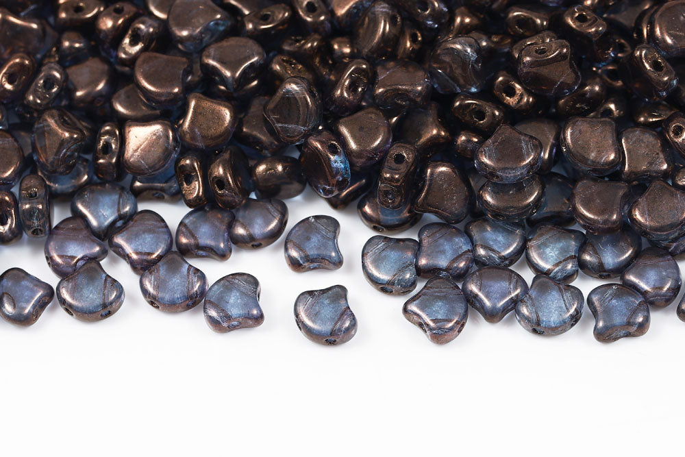 Ginko 7.5×7.5mm Jet Brown Iris 2-Hole Czech Beads