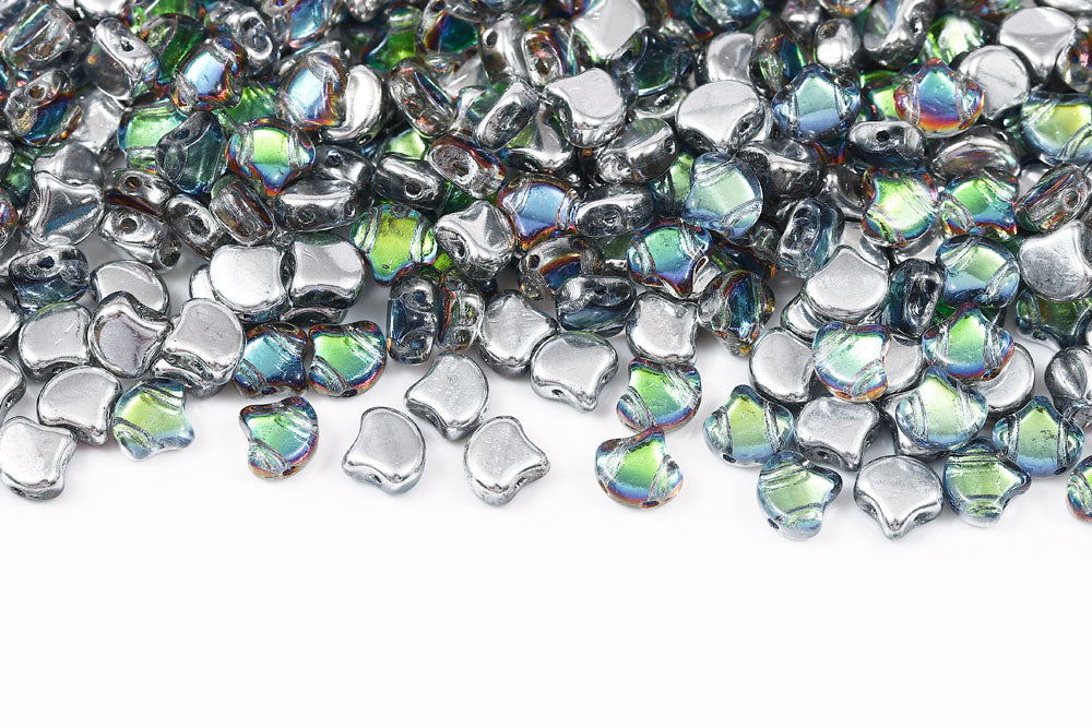 Ginko 7.5×7.5mm Jet Rainbow Iris 2-Hole Czech Beads
