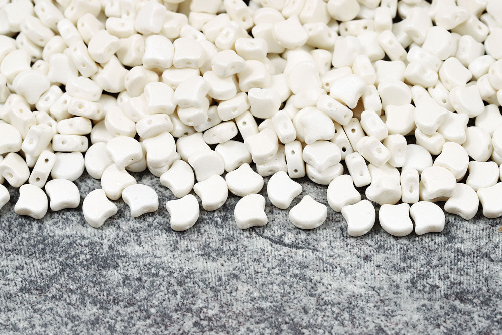 Ginko 7.5×7.5mm Pearl Shine White 2-Hole Czech Beads
