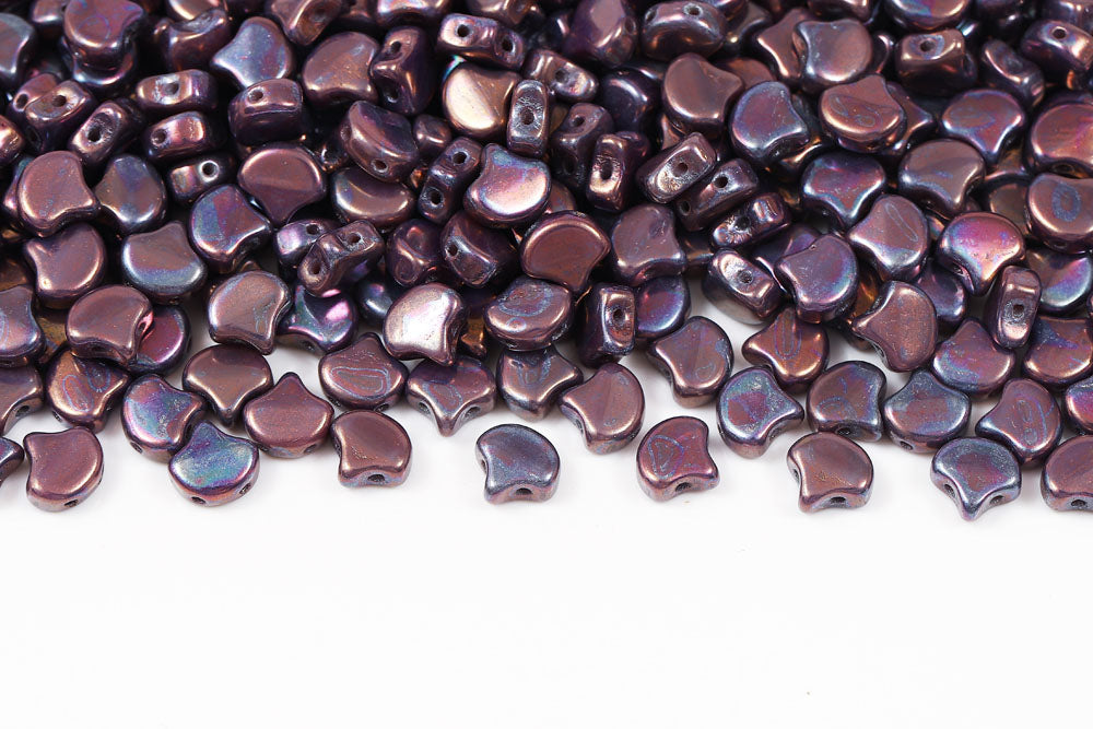 Ginko 7.5×7.5mm Metallic Suede Dark Purple 2-Hole Czech Beads