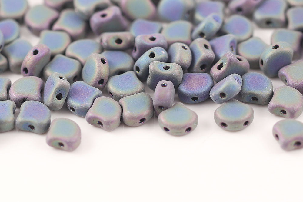 Ginko 7.5×7.5mm Opal Violet Mat 2-Hole Czech Beads